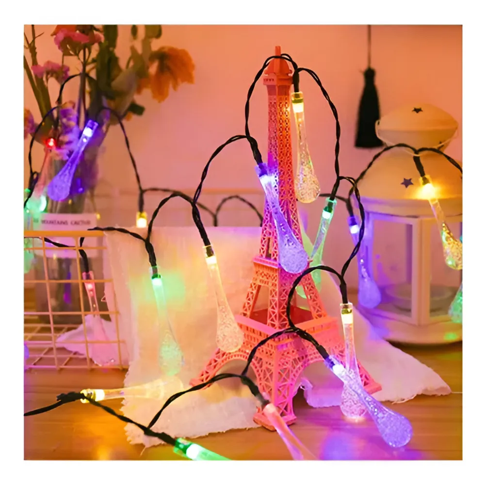 Ilumina tu espacio exterior con la Guirnalda Solar Gotas Multicolor de 20 LEDs, diseñada para aportar un toque de color y elegancia a cualquier ambiente. Con un cable verde musgo de 5 metros de longitud, esta guirnalda se adapta perfectamente a jardines, terrazas o balcones, creando un ambiente festivo tanto para reuniones como para momentos de tranquilidad.