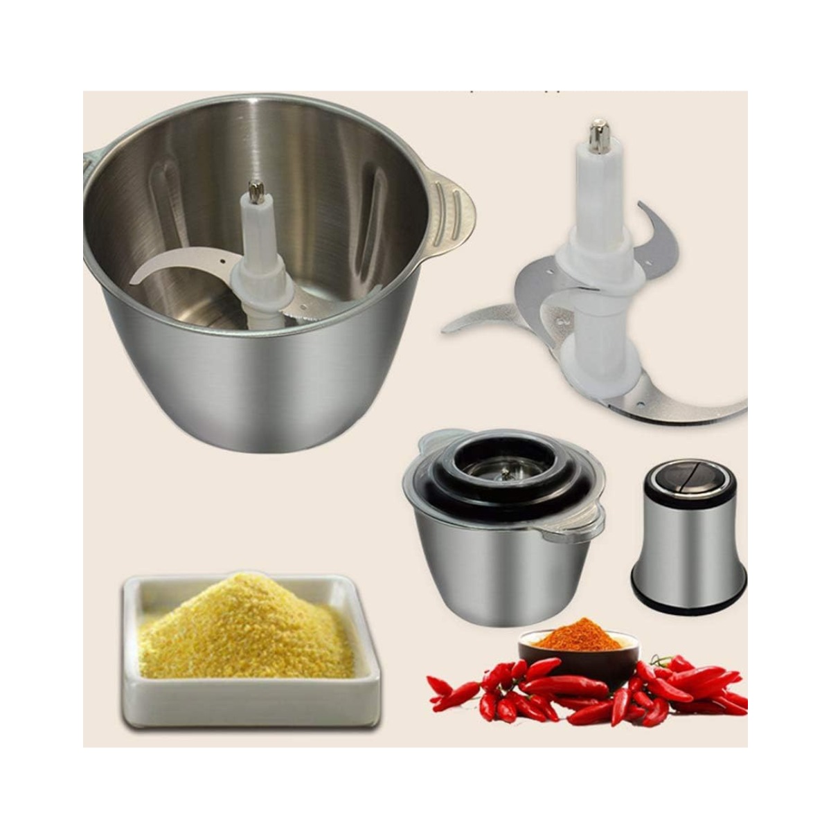 - Picadora de Carne de Múltiples Funciones: Utilizando una hoja de acero inoxidable y vasos de mezcla, este picador puede triturar la pulpa más dura. Con una capacidad de 3 litros, es capaz de moler grandes cantidades de ingredientes de cocina. Ofrece dos engranajes ajustables para adaptarse a diversas necesidades de preparación.